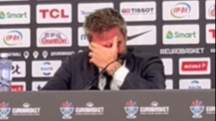 赛后发布会现场,意大利主教练波泽科宣布辞职后情绪失控,含泪离开了发布会现场。