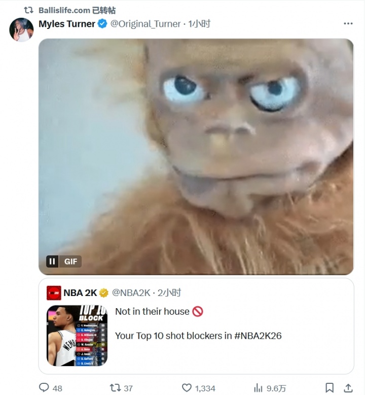 值得注意的是,雄鹿队内线特纳未能入选该榜单,他在社交媒体转发了这份排名并配以表情符号回应。
